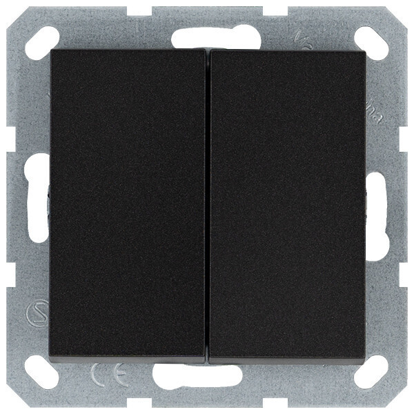 Выключатель двухклавишный проходной 10A 250V~ с накладкой, цвет Антрацит