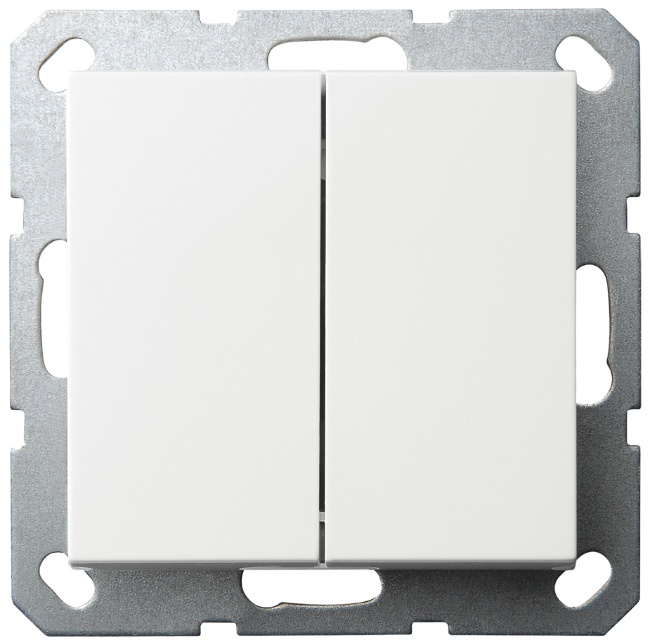 G3022W/Выключатель двухклавишный проходной 10A 250V~ с накладкой, цвет белый глянцевый