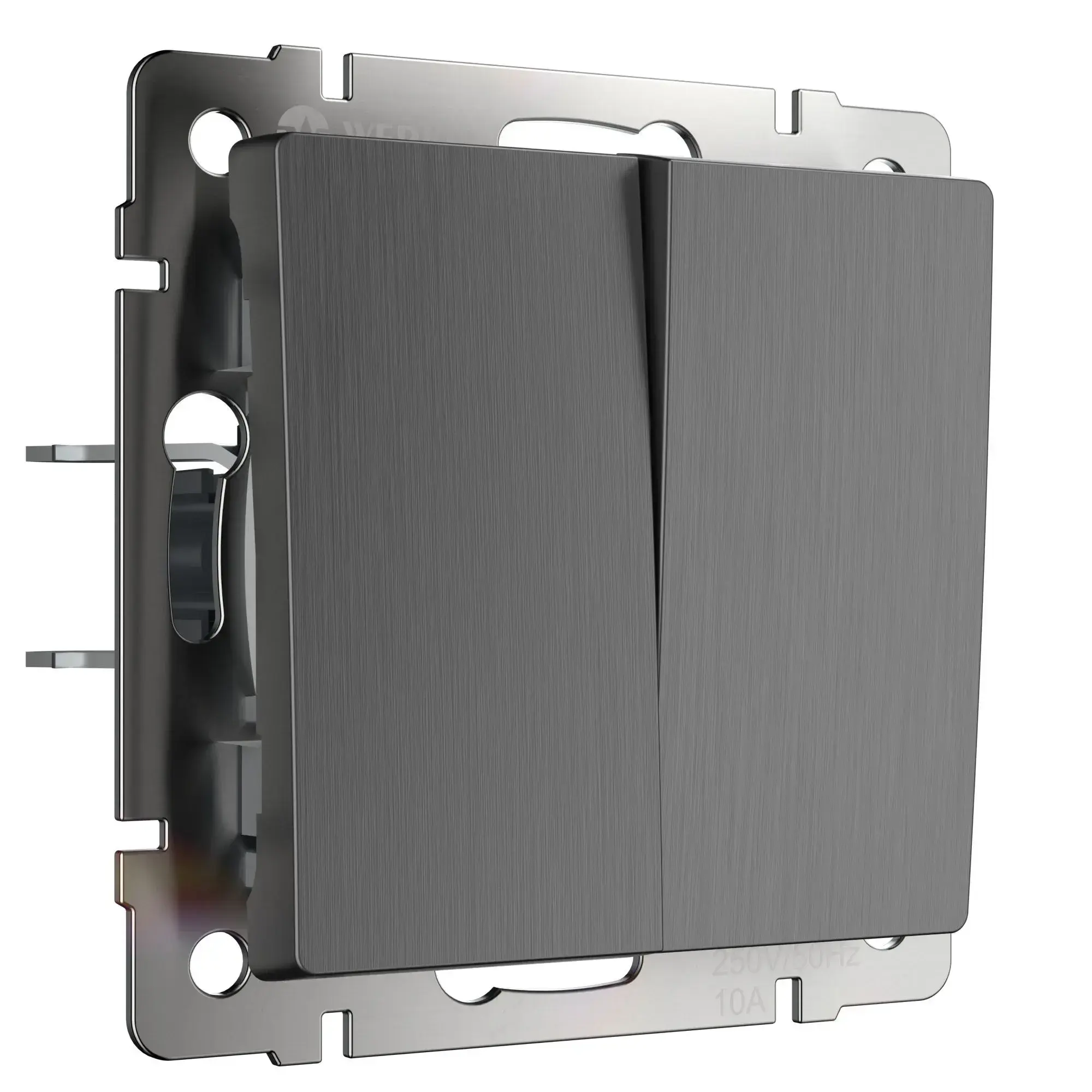 Выключатель 2-клавишный проходной графит рифленый W1122004 с номинальным током 10А и напряжением 250В, разработан для управления одним источником света из нескольких точек. Выключатель 1-клавишный проходной представляет собой механизм нажимного типа с металлическим суппортом и декоративными накладками. Он устанавливается в монтажную коробку, оставляя видимыми только лицевую панель и накладную рамку. Механизм для скрытого монтажа оснащён суппортом из нержавеющей стали, обеспечивающим надёжную фиксацию изделия в подрозетнике. Контакты обладают высокой надёжностью и способны выдерживать значительные нагрузки, а их ресурс составляет 40 000 циклов. Накладки изготовлены из высококачественного поликарбоната, устойчивого к высоким температурам. Одноклавишный проходной отличается удобством использования, безопасностью и стабильностью срабатывания механизма.