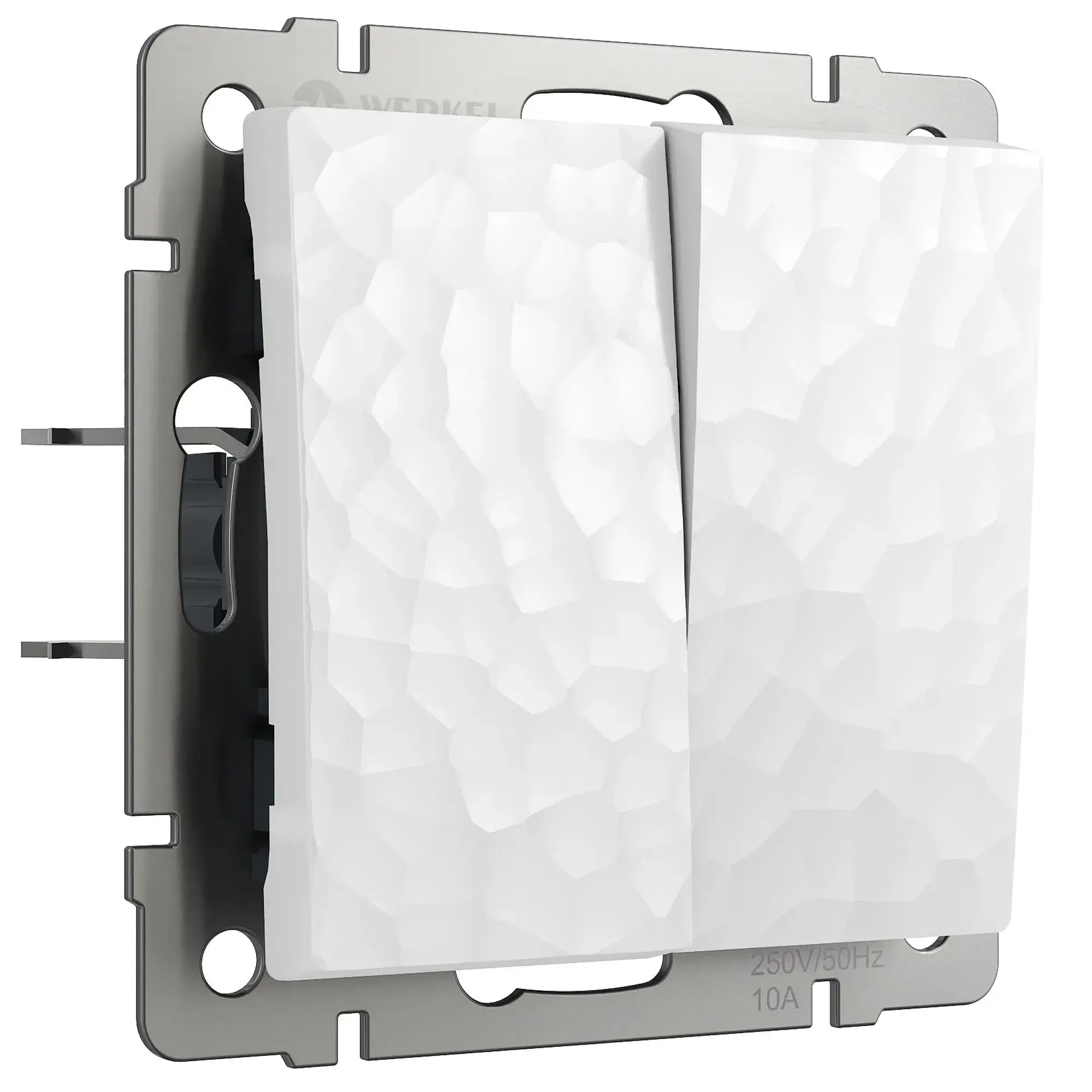 Выключатель двухклавишный проходной белый Hammer с номинальным током 10А и напряжением 250В, разработан для управления одним источником света из нескольких точек. Выключатель 2-клавишный проходной W1222001 представляет собой механизм нажимного типа с металлическим суппортом и декоративными накладками. Он устанавливается в монтажную коробку, оставляя видимыми только лицевую панель и накладную рамку. Механизм для скрытого монтажа оснащён суппортом из нержавеющей стали, обеспечивающим надёжную фиксацию изделия в подрозетнике. Контакты обладают высокой надёжностью и способны выдерживать значительные нагрузки, а их ресурс составляет 40 000 циклов. Накладки изготовлены из высококачественного поликарбоната, устойчивого к высоким температурам. Двухклавишный проходной отличается удобством использования, безопасностью и стабильностью срабатывания механизма.