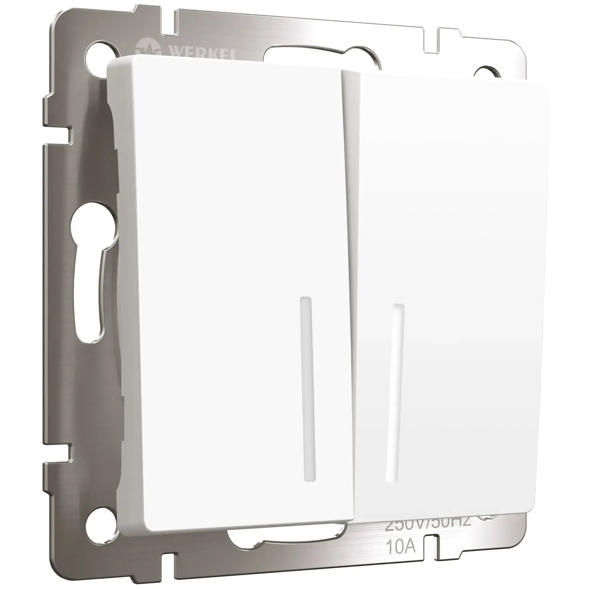 Механизм двухклавишного проходного выключателя оснащен матовой лицевой панелью. Матовая поверхность – это современный тренд, задающий стиль вашему интерьеру. Она не бликует, обладает бархатистой фактурой и тактильной мягкостью. Белый цвет будет эффектно смотреться в любом интерьерном пространстве и гармонично сочетаться с любыми материалами. Белая светодиодная подсветка с мягким свечением обозначит механизм и поможет ориентироваться в помещении в темное время суток. Механизм выключателя оснащен качественной контактной группой из фосфорной бронзы и технического серебра (90% серебра, 10% никеля), которая выдерживает большую нагрузку и обладает большим сроком службы. Суппорт из нержавеющей стали позволяет надежно зафиксировать изделие в подрозетнике. Механизм с суппортом из нержавеющей стали устанавливается в стандартную монтажную коробку и надежно фиксируется с помощью винтов и распорных лапок. Декоративные рамки легко устанавливаются и надежно фиксируются на суппорте при помощи клипс Easy Click. Механизмы с матовыми накладками комбинируются с любыми рамками Werkel. Совместимость дает большой простор в создании множества уникальных сочетаний.