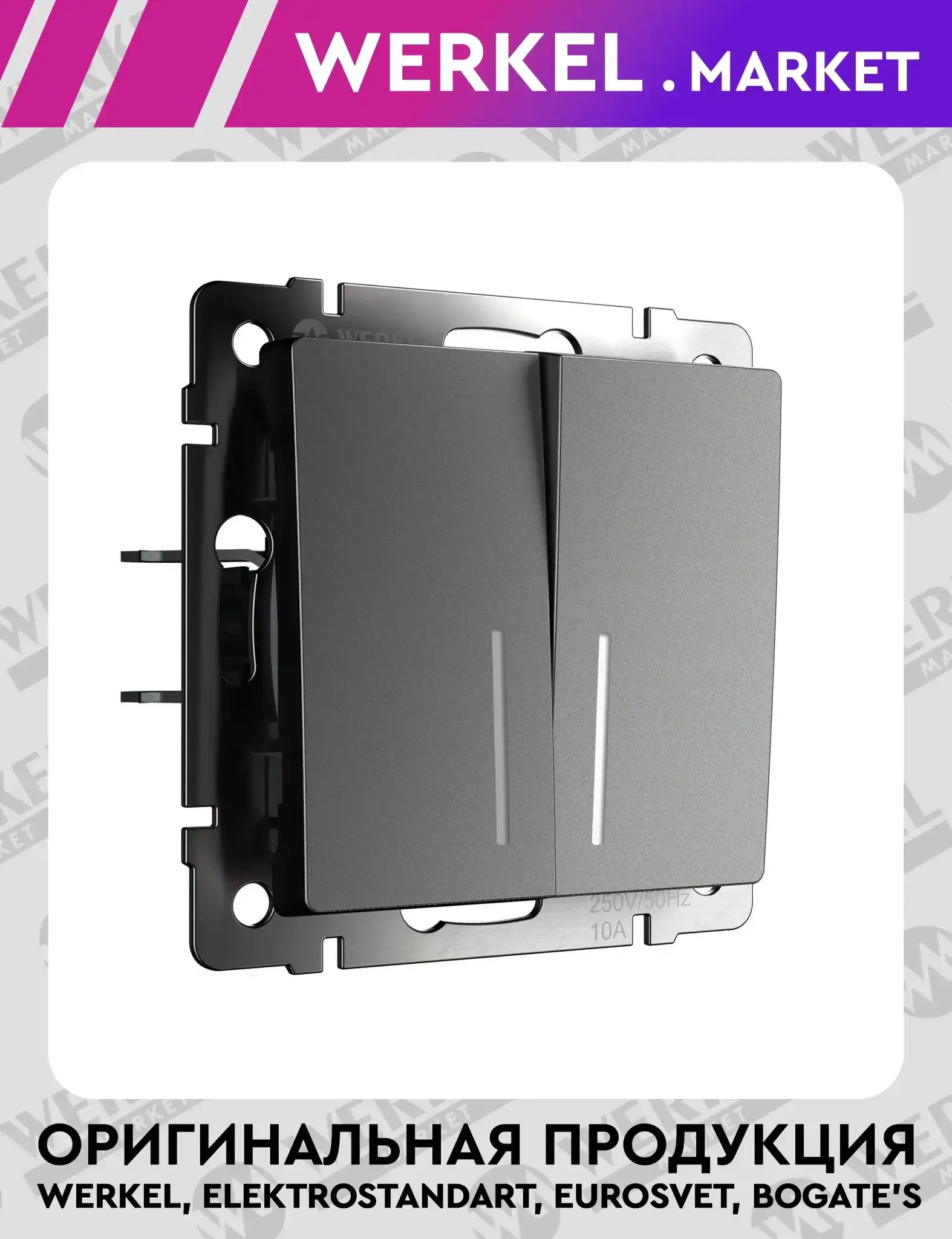 Выключатель двухклавишный проходной с подсветкой графит матовый W1122164 с номинальным током 10А и напряжением 250В, разработан для управления одним источником света из нескольких точек. Мягкий свет от светодиодов дает возможность без труда обнаружить выключатель ночью и помогает ориентироваться в квартире, доме или другом помещении. Выключатель 2-клавишный проходной представляет собой механизм нажимного типа с металлическим суппортом и декоративными накладками. Он устанавливается в монтажную коробку, оставляя видимыми только лицевую панель и накладную рамку. Механизм для скрытого монтажа оснащён суппортом из нержавеющей стали, обеспечивающим надёжную фиксацию изделия в подрозетнике. Контакты обладают высокой надёжностью и способны выдерживать значительные нагрузки, а их ресурс составляет 40 000 циклов. Накладки изготовлены из высококачественного поликарбоната, устойчивого к высоким температурам. Одноклавишный проходной отличается удобством использования, безопасностью и стабильностью срабатывания механизма.