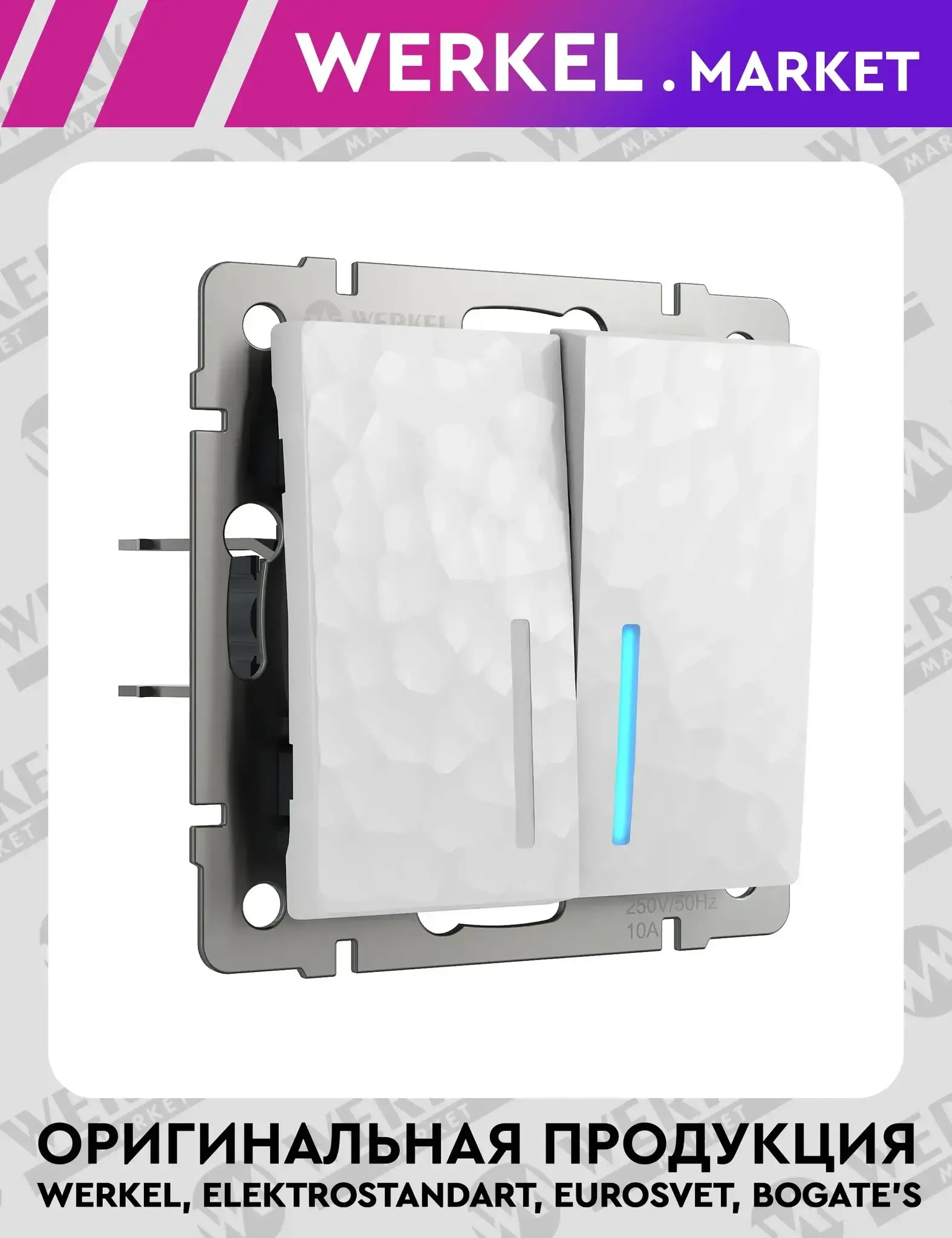 Выключатель двухклавишный проходной с подсветкой Hammer белый W1222101 с номинальным током 10А при напряжении 250В и частоте 50Гц является важным элементом любой домашней электрической сети, предназначенным для управления освещением. Выключатель проходной разработан для управления одним источником света из нескольких точек. Приглушённое свечение светодиодов облегчает поиск выключателя в тёмное время суток и помогает ориентироваться в помещении. Выключатель проходной с подсветкой представляет собой механизм нажимного типа с металлическим суппортом и декоративными накладками. Он устанавливается в монтажную коробку, оставляя видимыми только лицевую панель и накладную рамку. Механизм для скрытого монтажа оснащён суппортом из нержавеющей стали, обеспечивающим надёжную фиксацию изделия в подрозетнике. Контакты обладают высокой надёжностью и способны выдерживать значительные нагрузки, а их ресурс составляет 40 000 циклов. Накладки изготовлены из высококачественного поликарбоната, устойчивого к высоким температурам. Проходной выключатель Werkel отличается удобством использования, безопасностью и стабильностью срабатывания механизма.