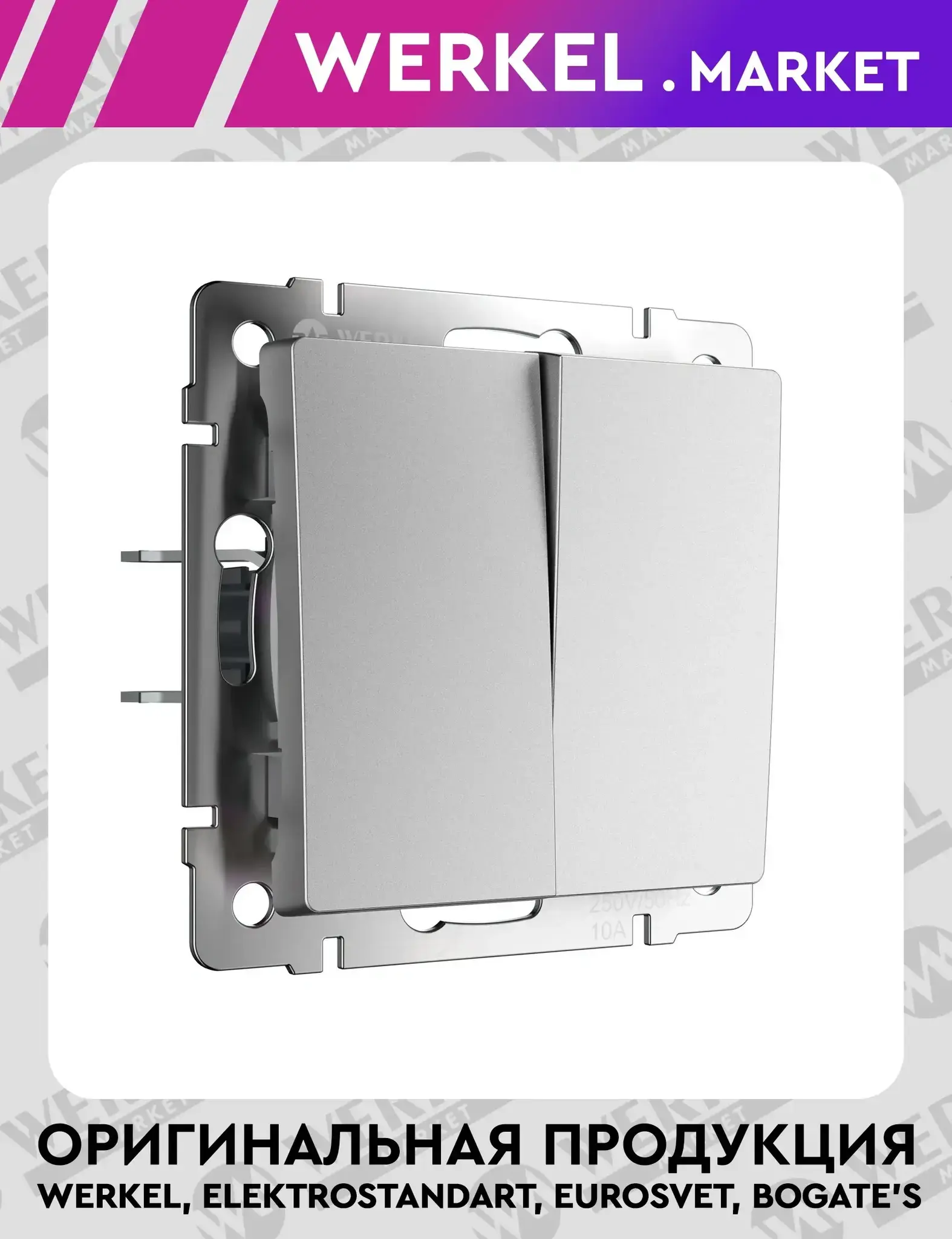 Выключатель двухклавишный серебряный матовый W1120065 рассчитан на 10А и 250В - представляет собой механизм нажимного типа с металлическим суппортом и декоративными накладками. Он устанавливается в монтажную коробку, оставляя видимыми только лицевую панель и накладную рамку. Механизм одноклавишного выключателя для скрытого монтажа оснащён суппортом из нержавеющей стали, который обеспечивает надёжное крепление изделия в подрозетнике. Контакты из фосфористой бронзы и серебра обладают высокой надёжностью и способны выдерживать большие нагрузки, а их ресурс составляет 40 тысяч циклов. Накладки изготовлены из высококачественного поликарбоната, устойчивого к высоким температурам. Механизм имеет удобный способ подключения проводов с сечением от 0,75 мм² до 2,5 мм². Одноклавишный встраиваемый выключатель удобен в использовании, безопасен и стабильно срабатывает. Механизмы с матовыми накладками комбинируются с любыми рамками Werkel. Совместимость дает большой простор в создании множества уникальных сочетаний.