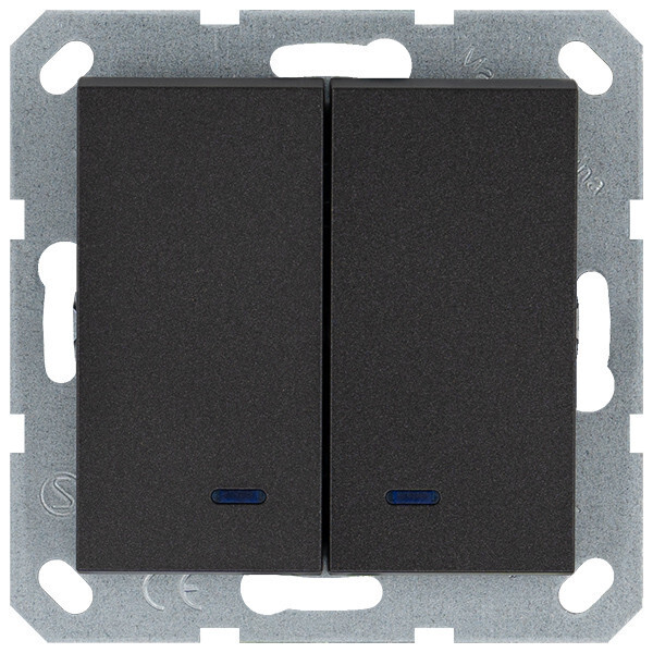 Выключатель двухклавишный со светодиодами 10A 250V~ с накладкой, цвет Антрацит
