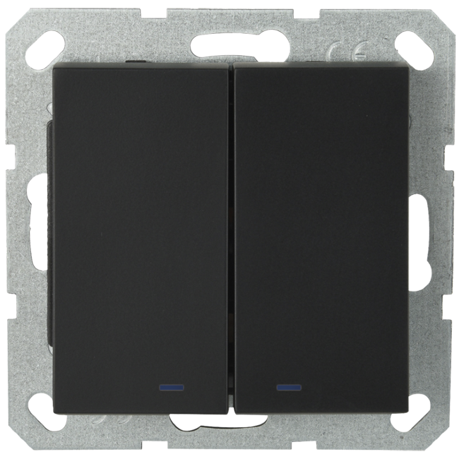 G3023NPB/Выключатель двухклавишный со светодиодами 10A 250V~ с накладкой, цвет черный матовый (soft touch)