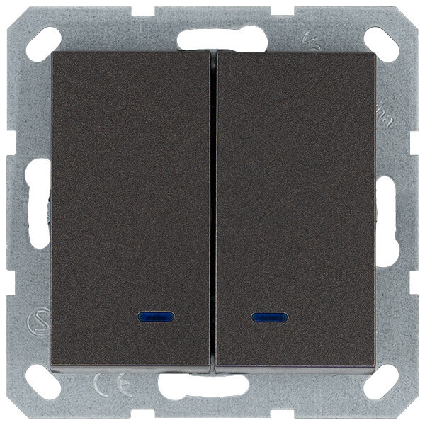 G3023NZ/Выключатель двухклавишный со светодиодами 10A 250V~ с накладкой, цвет Мокко