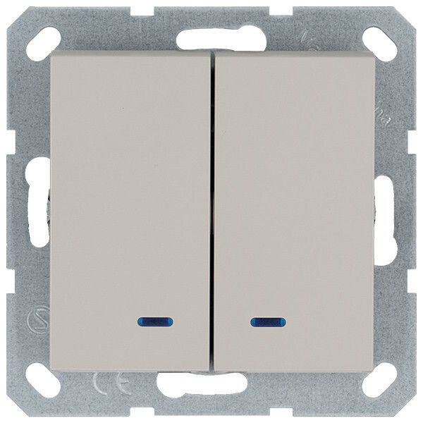 Выключатель двухклавишный со светодиодами 10A 250V~ с накладкой, цвет Тауп