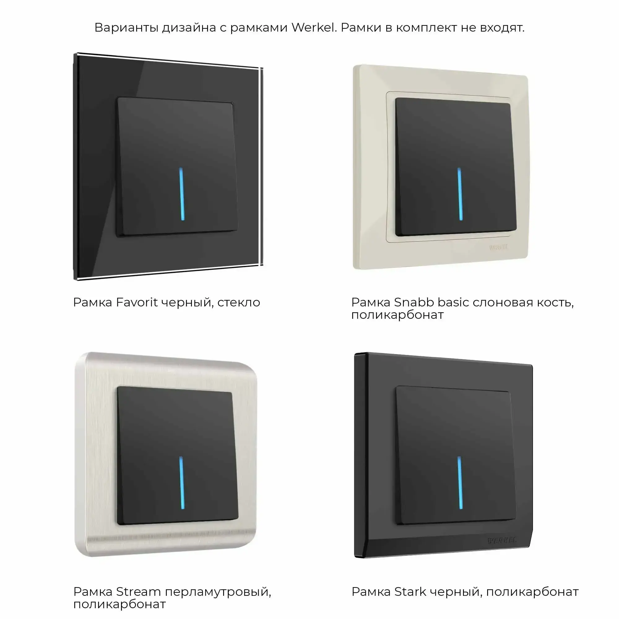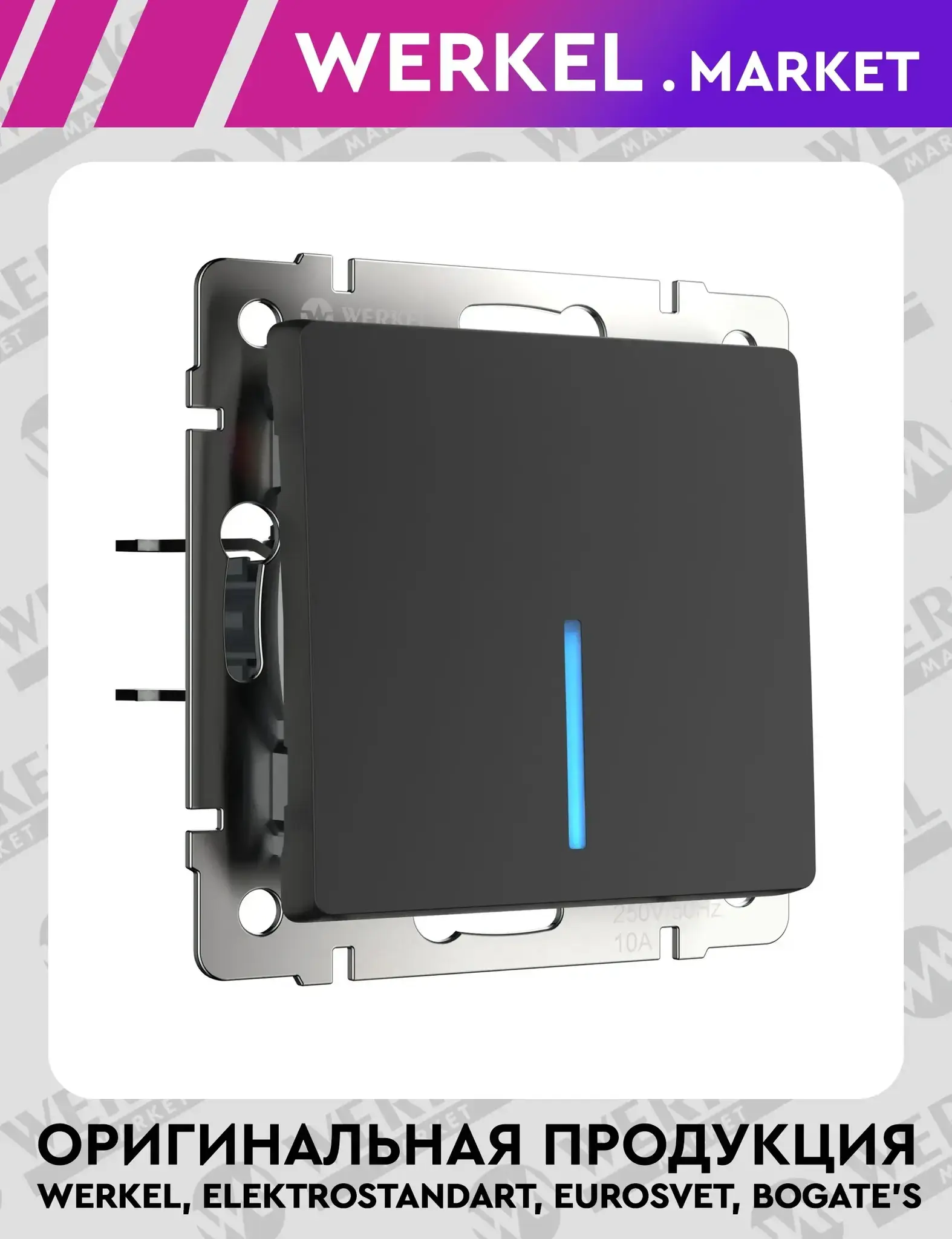 Выключатель одноклавишный проходной с подсветкой черный матовый с номинальным током 10А и напряжением 250В, разработан для управления одним источником света из нескольких точек. Мягкий свет от светодиодов дает возможность без труда обнаружить выключатель ночью и помогает ориентироваться в квартире, доме или другом помещении. Выключатель 1-клавишный проходной W1112108 представляет собой механизм нажимного типа с металлическим суппортом и декоративными накладками. Он устанавливается в монтажную коробку, оставляя видимыми только лицевую панель и накладную рамку. Механизм для скрытого монтажа оснащён суппортом из нержавеющей стали, обеспечивающим надёжную фиксацию изделия в подрозетнике. Контакты обладают высокой надёжностью и способны выдерживать значительные нагрузки, а их ресурс составляет 40 000 циклов. Накладки изготовлены из высококачественного поликарбоната, устойчивого к высоким температурам. Одноклавишный проходной отличается удобством использования, безопасностью и стабильностью срабатывания механизма.