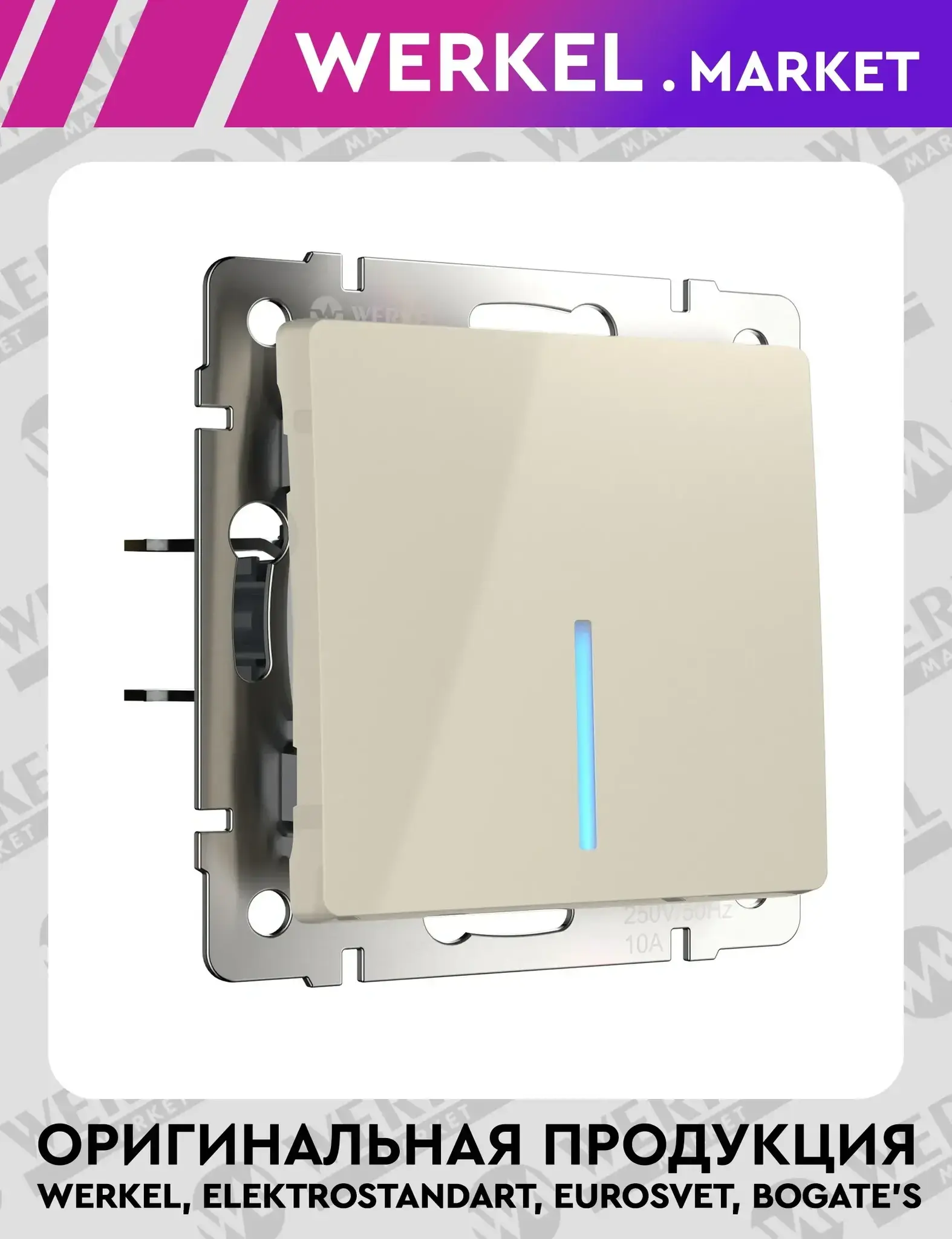 Выключатель одноклавишный проходной с подсветкой слоновая кость глянцевый с номинальным током 10А и напряжением 250В, разработан для управления одним источником света из нескольких точек. Мягкий свет от светодиодов дает возможность без труда обнаружить выключатель ночью и помогает ориентироваться в квартире, доме или другом помещении. Выключатель 1-клавишный проходной W1112103 представляет собой механизм нажимного типа с металлическим суппортом и декоративными накладками. Он устанавливается в монтажную коробку, оставляя видимыми только лицевую панель и накладную рамку. Механизм для скрытого монтажа оснащён суппортом из нержавеющей стали, обеспечивающим надёжную фиксацию изделия в подрозетнике. Контакты обладают высокой надёжностью и способны выдерживать значительные нагрузки, а их ресурс составляет 40 000 циклов. Накладки изготовлены из высококачественного поликарбоната, устойчивого к высоким температурам. Одноклавишный проходной отличается удобством использования, безопасностью и стабильностью срабатывания механизма.