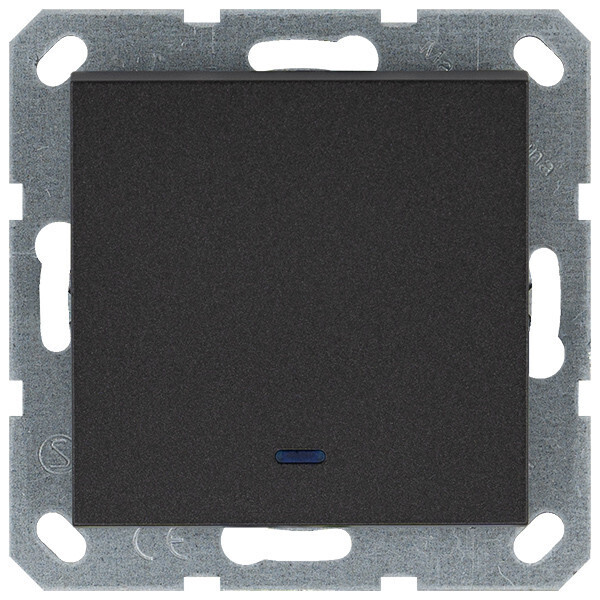 Выключатель одноклавишный проходной со светодиодом 10A 250V~ с накладкой, цвет Антрацит