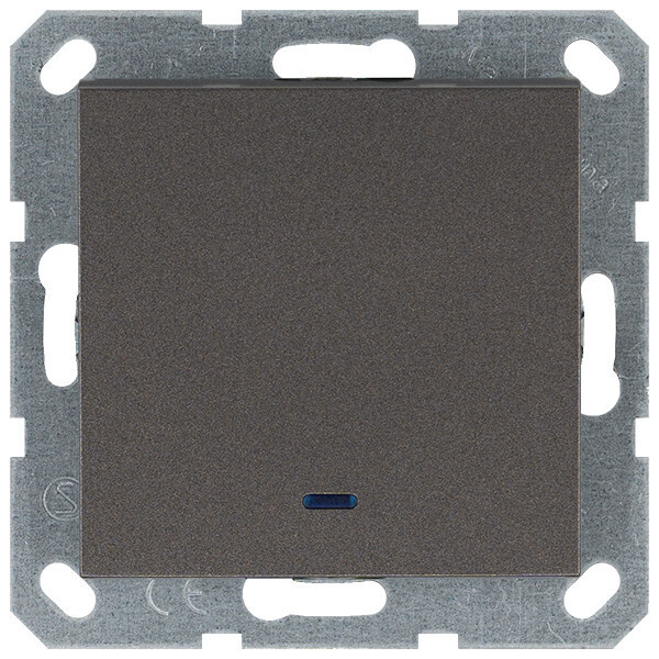 G3012NZ/Выключатель одноклавишный проходной со светодиодом 10A 250V~ с накладкой, цвет Мокко