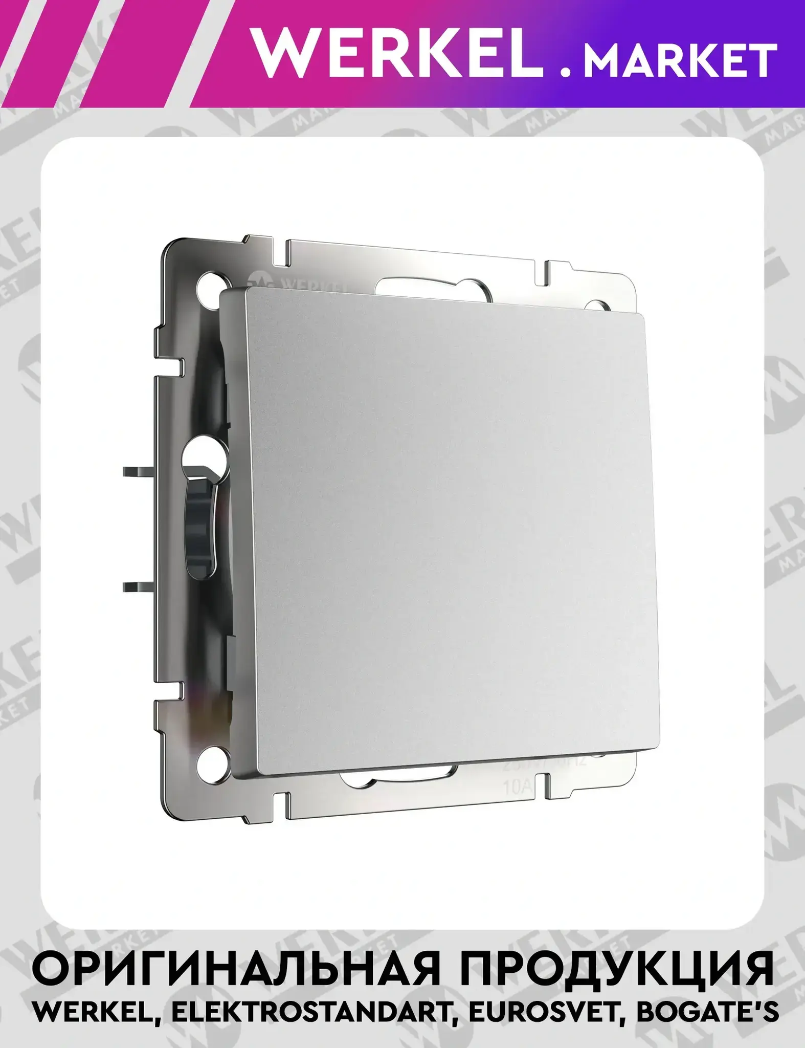 Выключатель 1-клавишный серебряный матовый W1110065 рассчитан на 10А и 250В - представляет собой механизм нажимного типа с металлическим суппортом и декоративными накладками. Он устанавливается в монтажную коробку, оставляя видимыми только лицевую панель и накладную рамку. Механизм для скрытого монтажа оснащён суппортом из нержавеющей стали, который обеспечивает надёжное крепление изделия в подрозетнике. Контакты из фосфористой бронзы и серебра обладают высокой надёжностью и способны выдерживать большие нагрузки, а их ресурс составляет 40 тысяч циклов. Накладки изготовлены из высококачественного поликарбоната, устойчивого к высоким температурам. Механизм имеет удобный способ подключения проводов с сечением от 0,75 мм² до 2,5 мм². Одноклавишный встраиваемый выключатель удобен в использовании, безопасен и стабильно срабатывает. Механизмы с матовыми накладками комбинируются с любыми рамками Werkel. Совместимость дает большой простор в создании множества уникальных сочетаний.