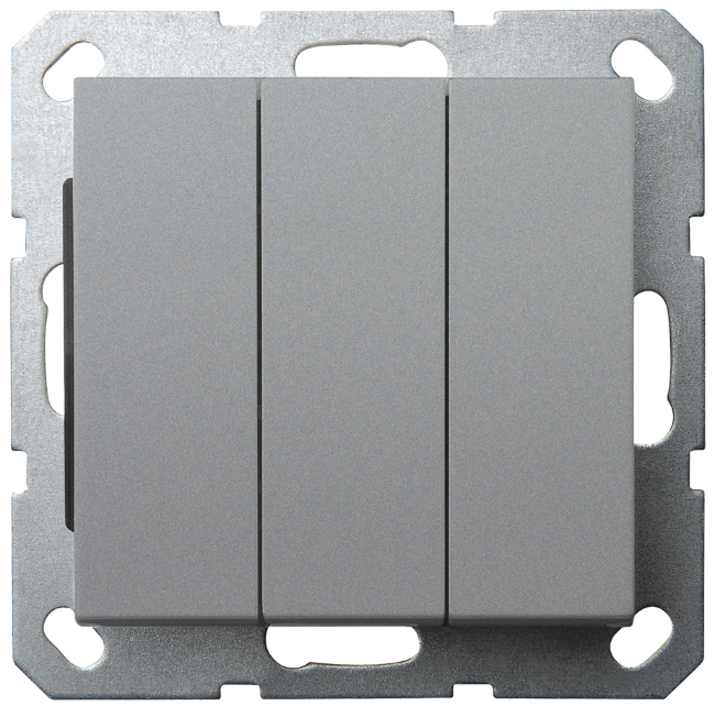 Выключатель трехклавишный 10A 250V~ с накладкой, цвет Алюминий