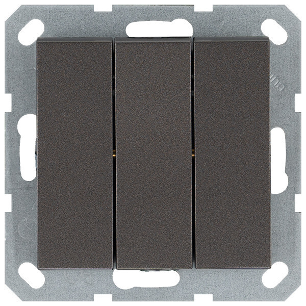 Выключатель трехклавишный 10A 250V~ с накладкой, цвет Мокко