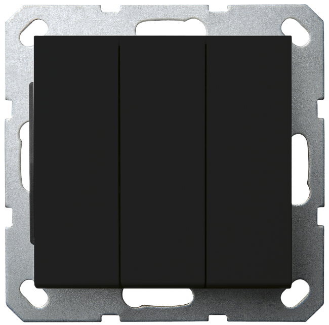 Выключатель трехклавишный 10A 250V~с накладкой, цвет Черный матовый (soft touch)