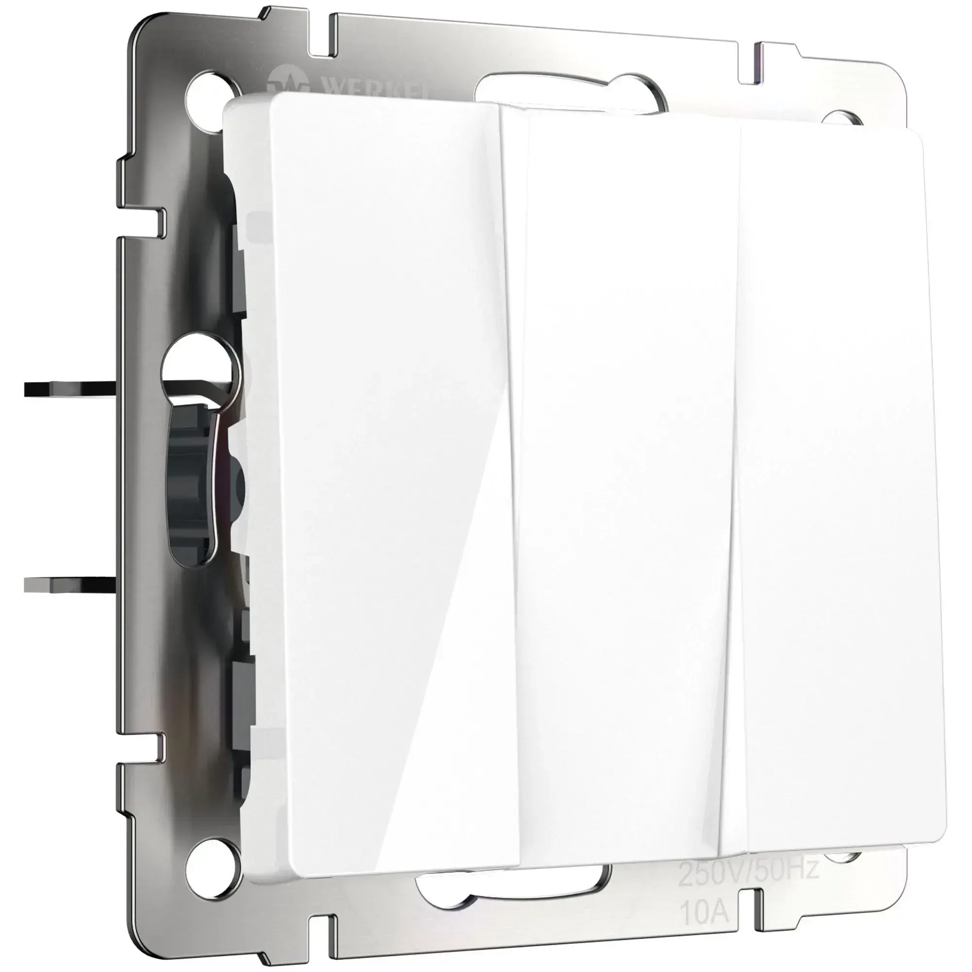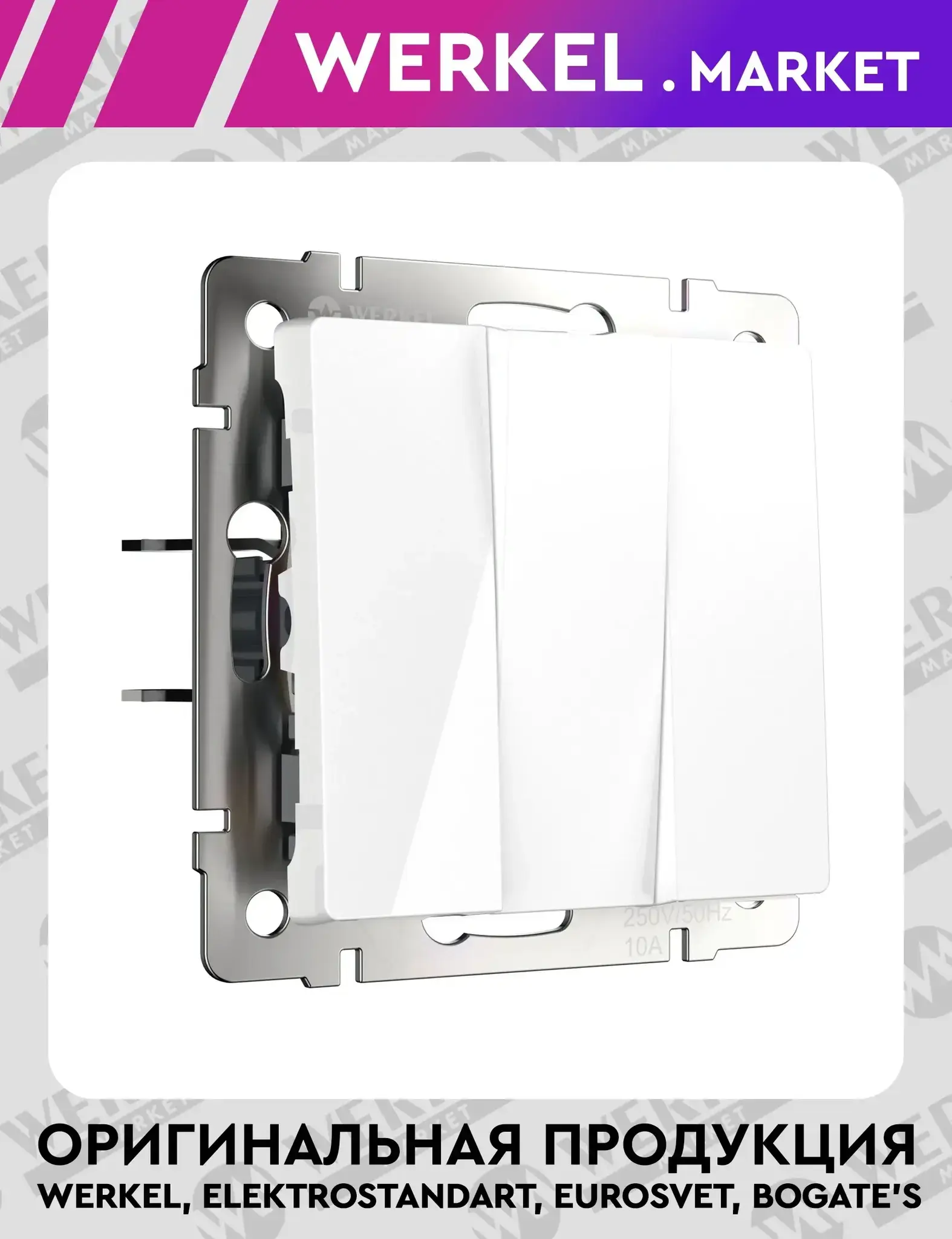 Выключатель трехклавишный белый W1130001 – надёжное и стильное управление освещением Обеспечьте удобство и безопасность управления освещением с трехклавишным выключателем W1130001 от компании Werkel. Этот современный механизм станет важным элементом вашей домашней электрической сети, позволяя легко управлять несколькими источниками света из одной точки. Благодаря высокому качеству материалов и продуманной конструкции, выключатель гарантирует долговечность, безопасность и стабильную работу. Особенности и преимущества: Удобство управления: Три независимые клавиши позволяют управлять несколькими группами освещения одновременно, что особенно удобно в больших помещениях или при зонировании пространства. Надежная конструкция: Суппорт из нержавеющей стали обеспечивает прочную фиксацию в подрозетнике, а контакты из фосфористой бронзы и серебра рассчитаны на высокую нагрузку и имеют ресурс в 40 000 циклов . Безопасность: Возможность подключения проводов сечением от 0.75 мм² до 2.5 мм² обеспечивает универсальность и безопасность использования. Стильный дизайн: Белый цвет и накладки из высококачественного поликарбоната, устойчивого к высоким температурам, делают выключатель эстетичным дополнением любого интерьера. Технические характеристики: Цвет изделия: белый Материал: поликарбонат (накладки), нержавеющая сталь (суппорт), фосфористая бронза и серебро (контакты) Напряжение: 250 В, 50 Гц Номинальный ток: 10 А Ресурс работы: 40 000 циклов Сечение подключаемых проводов: от 0.75 мм² до 2.5 мм² Совместимость: комбинируется с любыми рамками Werkel Тип монтажа: встраиваемый (видна только лицевая панель и накладная рамка) Где использовать трехклавишный выключатель Werkel ? Управления освещением в гостиных, спальнях, кухнях и других помещениях с несколькими светильниками. Зонирования пространства за счет разделения источников света. Использования в коммерческих помещениях, где важны надежность и стильный внешний вид. Почему выбирают трехклавишный выключатель W1130001? Надежность: Прочные материалы и высококачественные контакты обеспечивают длительную и безупречную работу. Эстетика: Минималистичный дизайн и белый цвет гармонично вписываются в любой интерьер. Простота монтажа: Легкая установка в стандартные подрозетники делает процесс быстрым и удобным. Гибкость использования: Совместимость с рамками Werkel позволяет создавать индивидуальные комбинации под любой стиль. Добавьте выключатель трехклавишный W1130001 в корзину или свяжитесь с нашими менеджерами для получения консультации. Это доступное и практичное решение для комфортного управления освещением в вашем доме!